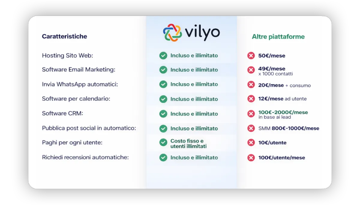 Vilyo è la soluzione definitiva per il tuo marketing digitale. Con la nostra piattaforma intuitiva e completa, hai a disposizione ogni strumento necessario per eccellere online. !