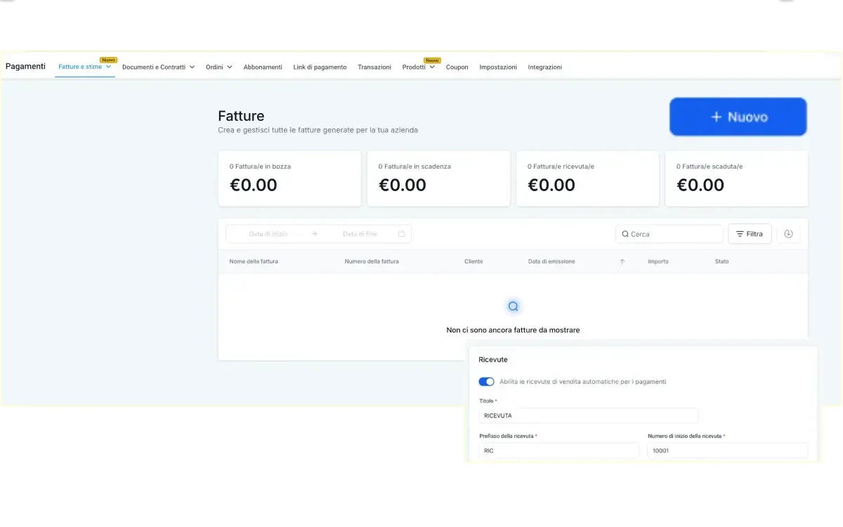 Apri il tuo store, prodotti e checkout in pochi minuti, senza plugin esterni.